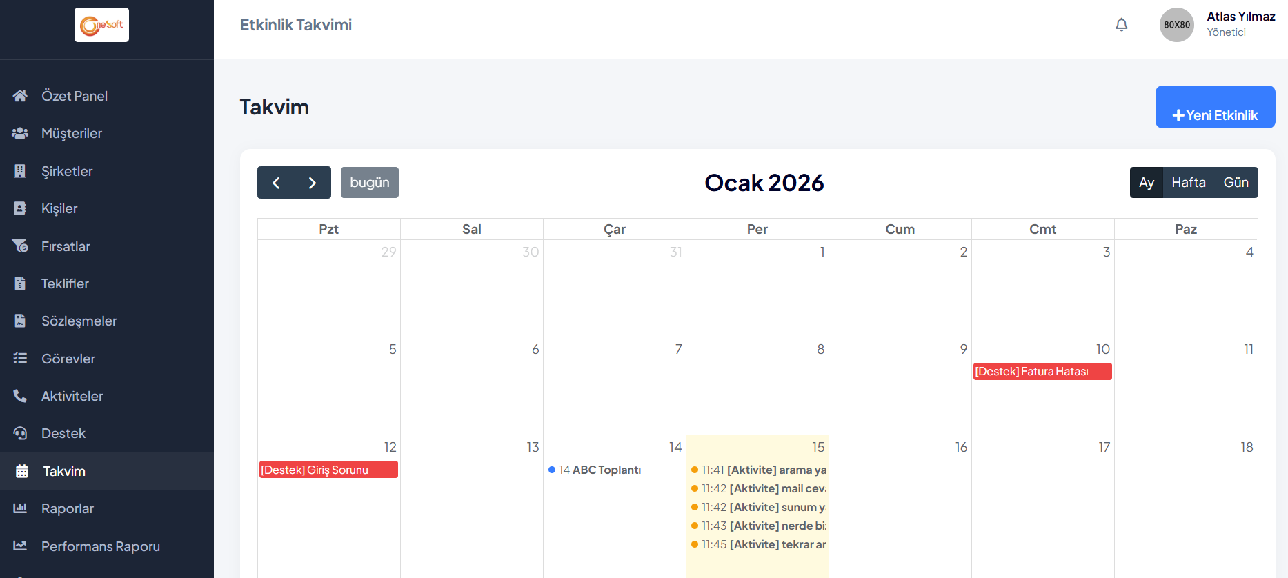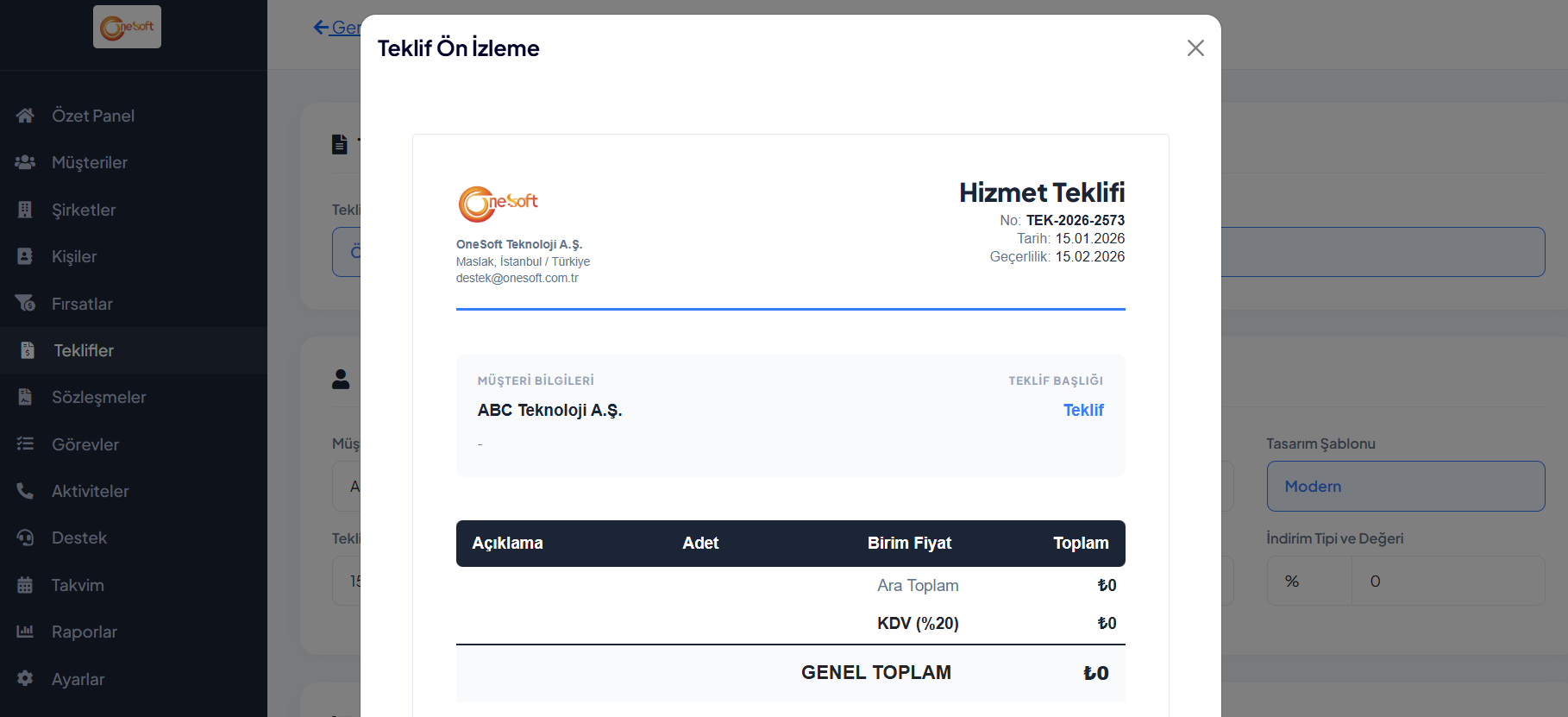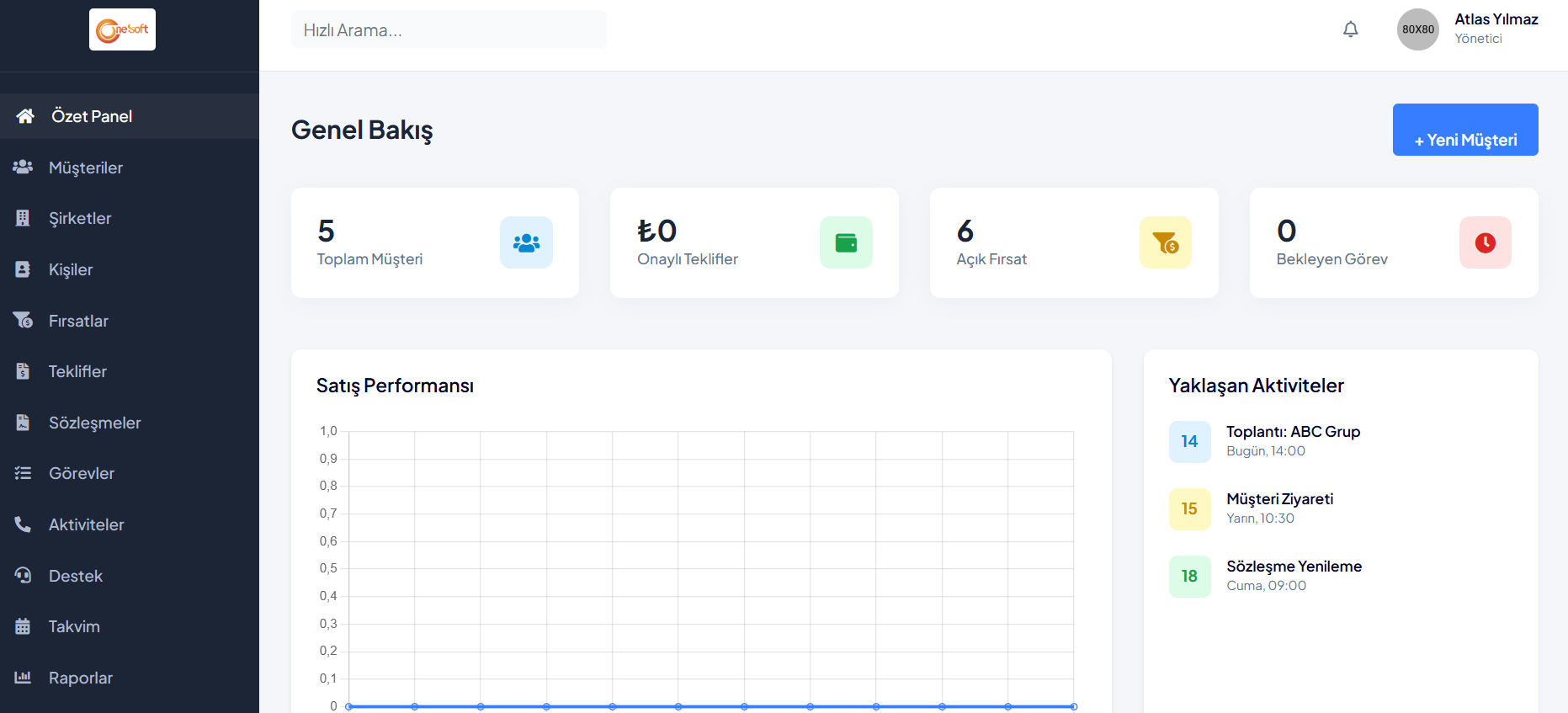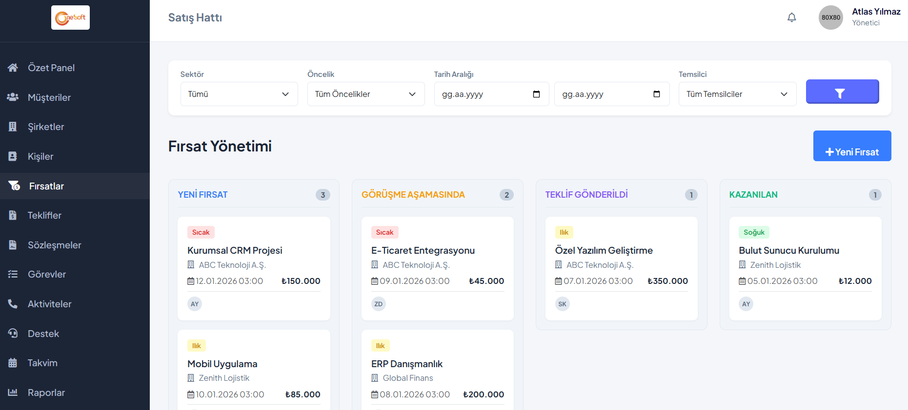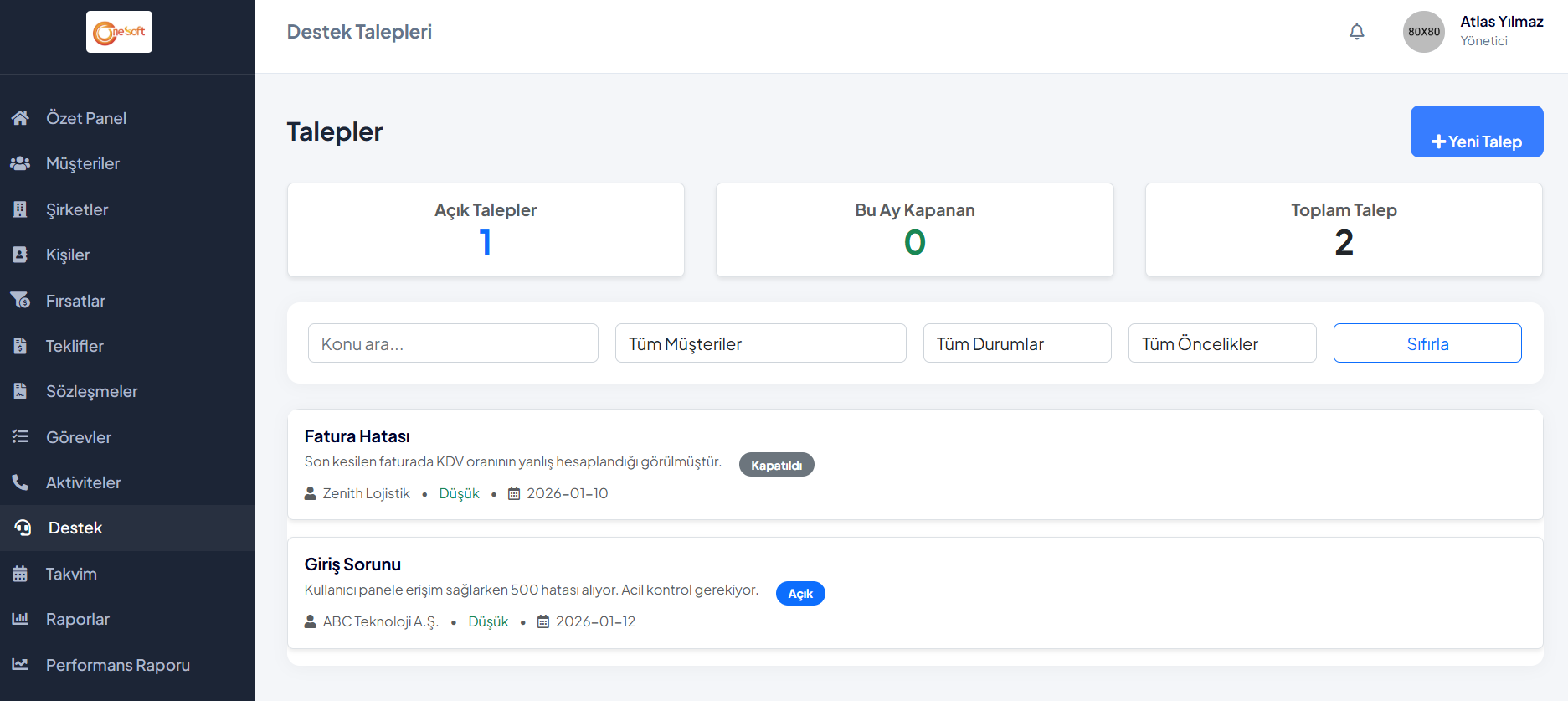 OneSoft CRM ile tüm müşteri yönetim süreçlerinizi tek bir